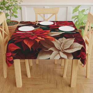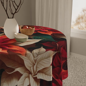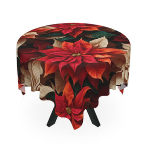 Color Bunches of Poinsettias Round or Square Christmas Floral Tablecloth