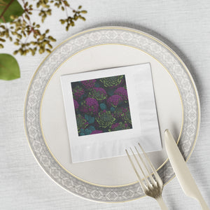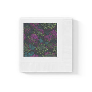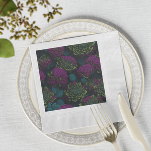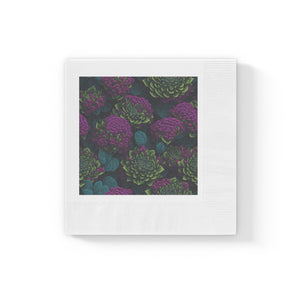 Alluring Sedum Flowers Designed White Coined Napkins Available in 2 Sizes and Quantities