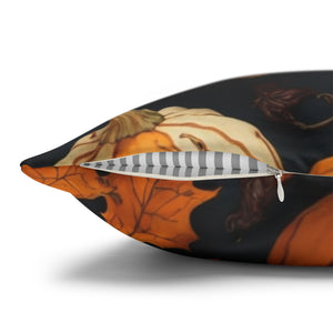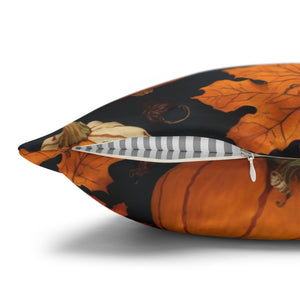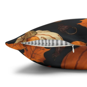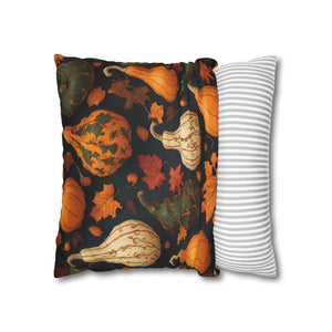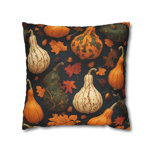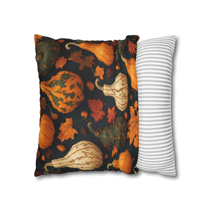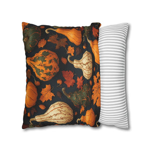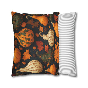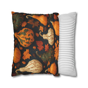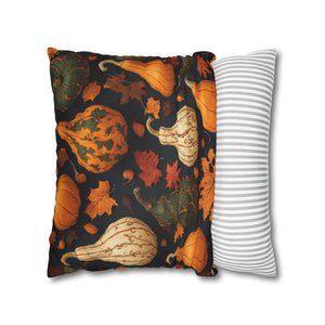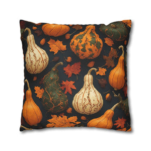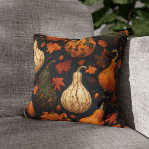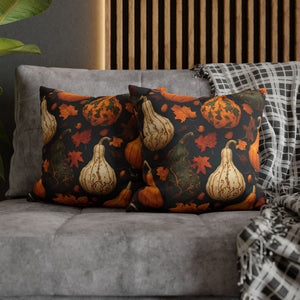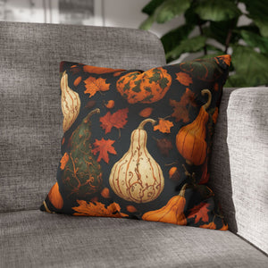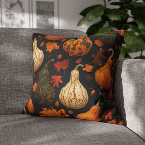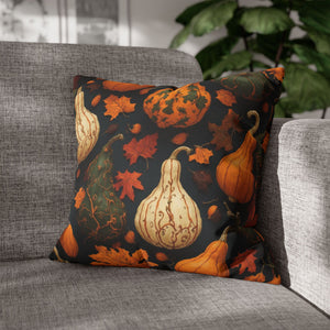 Autumn Floral and Gourds Fall Design Square Pillow Case Cover - Fall-Themed Pillow Case - Cozy Charm Ambiance in Any Room
