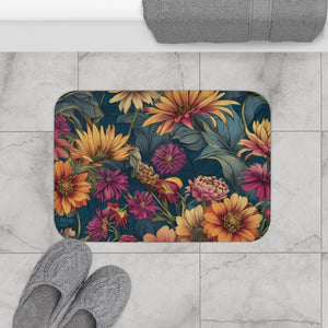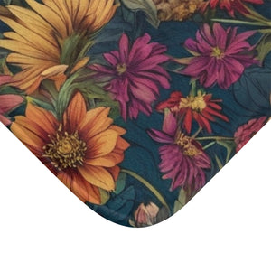 Beautiful Zinnia Blooming Garden Designed Bath Mat Available in 2 Sizes
