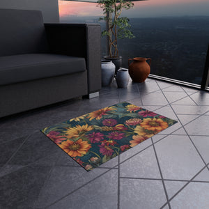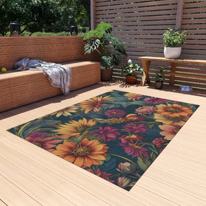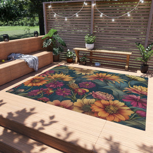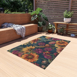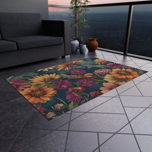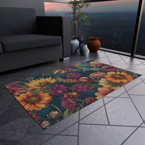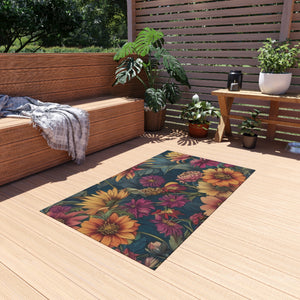 Beautiful Zinnia Blooming Garden Designed Indoor Outdoor Rug Available in Multiple Sizes