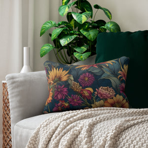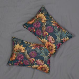 Beautiful Zinnia Blooming Garden Designed Spun Polyester Lumbar Pillow with Insert