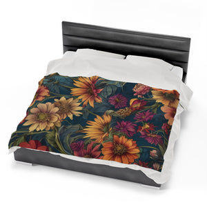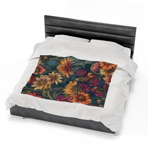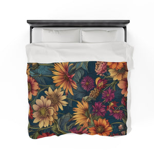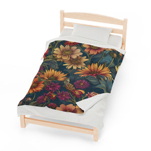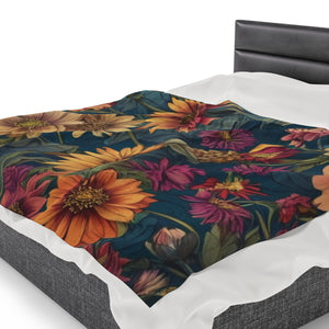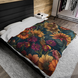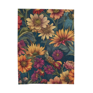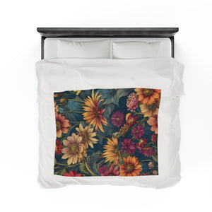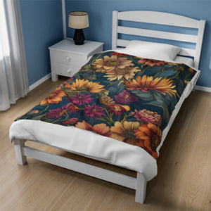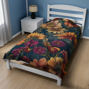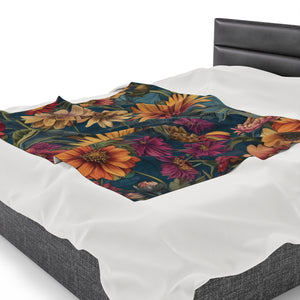 Beautiful Zinnia Blooming Garden Designed Velveteen Plush Blanket Multiple Sizes Available