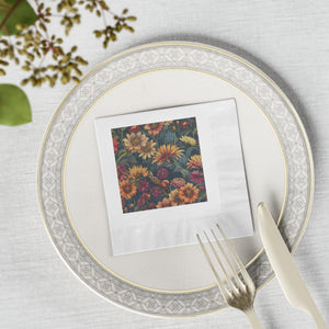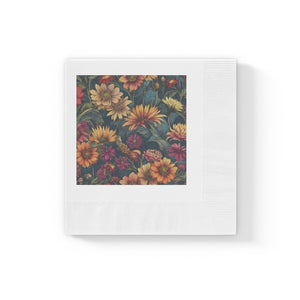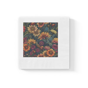 Beautiful Zinnia Blooming Garden Designed White Coined Napkins Available in 2 Sizes and Quantities