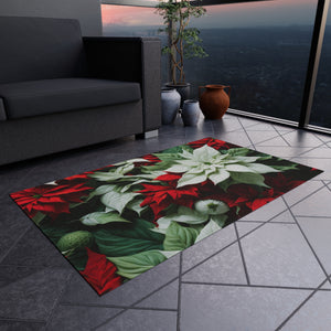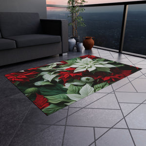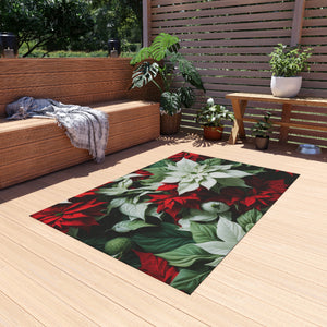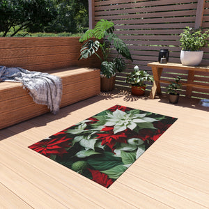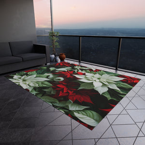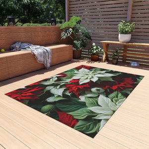 Blooming Bali Poinsettia Flower Designed Indoor Outdoor Rug Available in Multiple Sizes