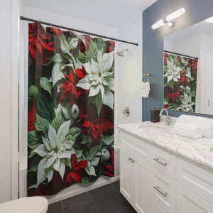 Blooming Bali Poinsettia Flower Designed Shower Curtain