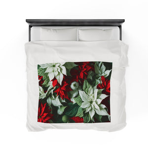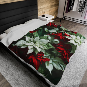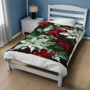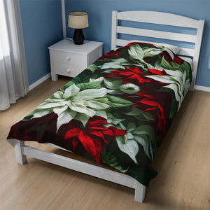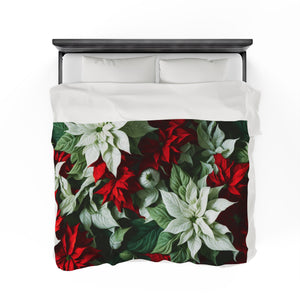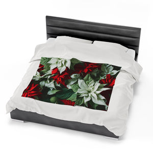 Blooming Bali Poinsettia Flower Designed Velveteen Plush Blanket
