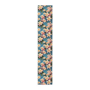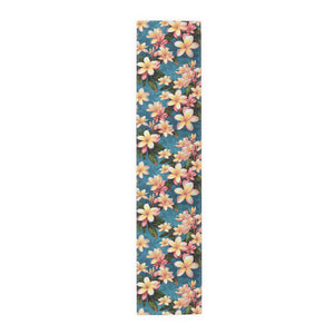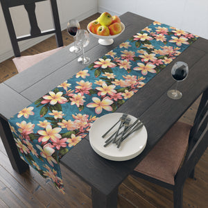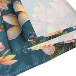 Elevate your kitchen aesthetics with the blooming beauty of the Plumeria Flower Design Table Runner. An essential addition to any stylish kitchen, this table runner transforms your setting into a picturesque scene straight out of a catalog. Available in two exquisite materials—Cotton Twill and Polyester—this runner accommodates any artistic idea or design in vivid, captivating colors. Choose from two size options: 16" × 72" or 16" × 90", ensuring the perfect fit for your table. The hemmed edges offer a polished finish while the one-sided print adds a touch of elegance. Crafted to enhance your decor, this table runner seamlessly combines functionality with aesthetic appeal, making it a must-have accessory to enhance your dining space.