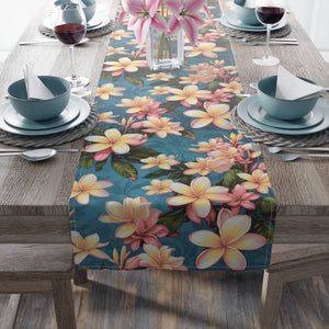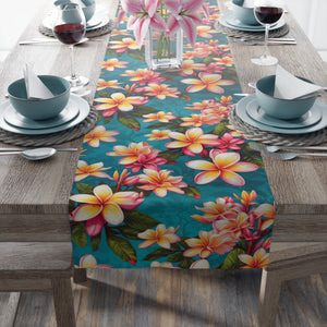 Bold Summer Plumeria Flower Designed Table Runner (Cotton/Poly) Available in 2 Sizes