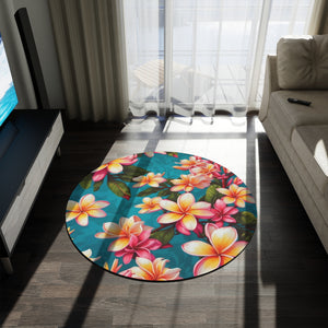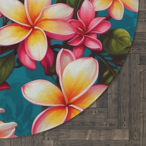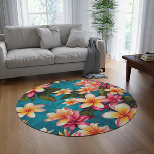 Bold Summer Plumeria Flower Designed 60" Round Rug