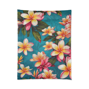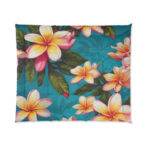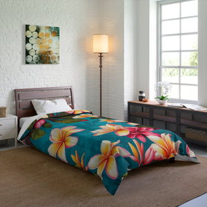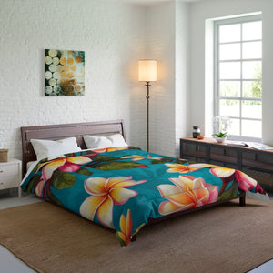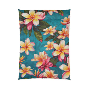 Bold Summer Plumeria Flower Designed Comforter Multiple Sizes Available