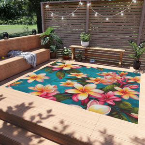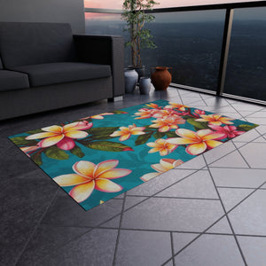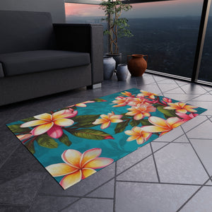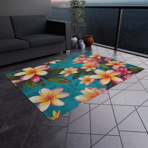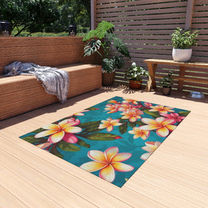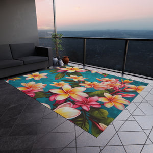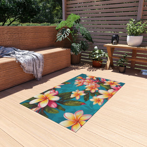 Bold Summer Plumeria Flower Designed Indoor Outdoor Rug Multiple Sizes Available