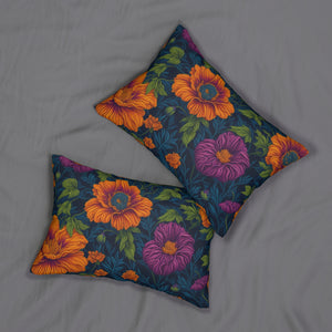 Botanical Tetraneuris Flowers Designed Spun Polyester Lumbar Pillow with Insert