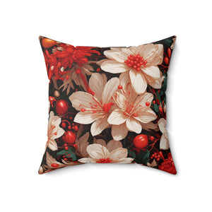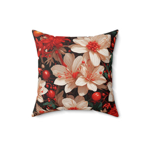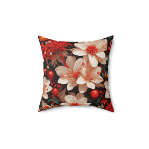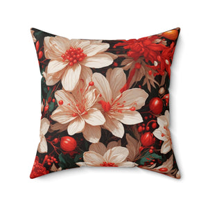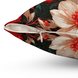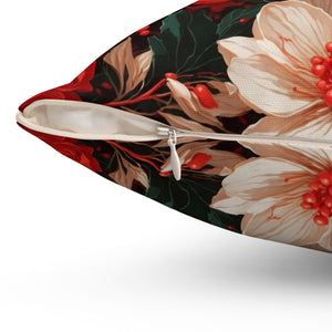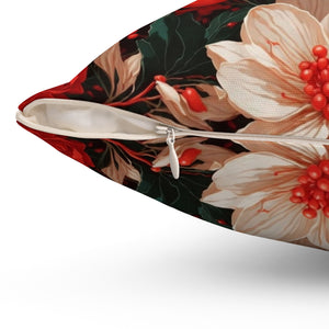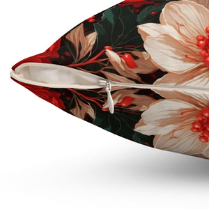 Majestic Christmas Flowers and Red Berries Designed Spun Polyester Square Pillow with Insert