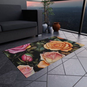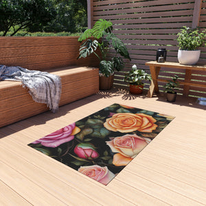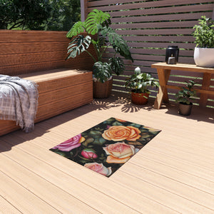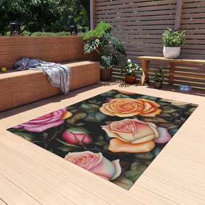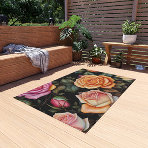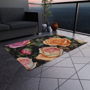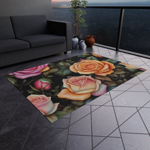 Captivating Pastel Floral Rose Designed Indoor Outdoor Rug Available in Multiple Sizes