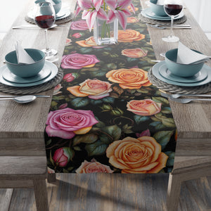 Captivating Pastel Floral Rose Designed Table Runner (Cotton, Poly) Available in 2 Sizes