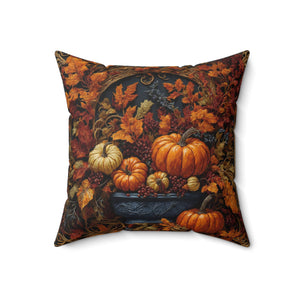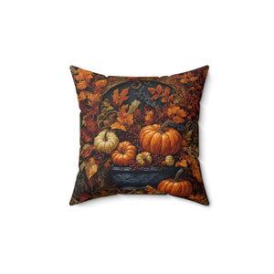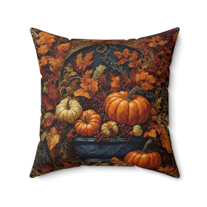 Autumn Collage Gourds & Leaves Fall Designed Spun Polyester Square Throw Pillow with Insert