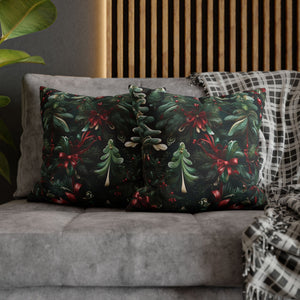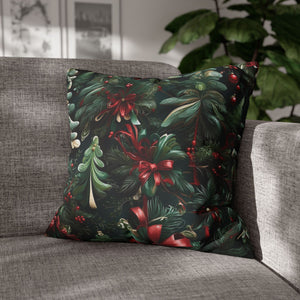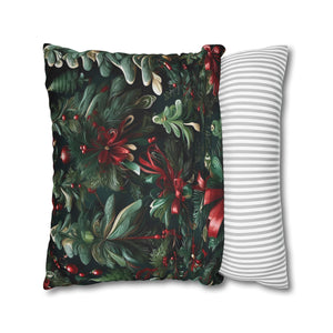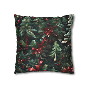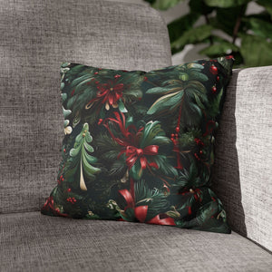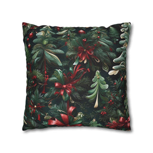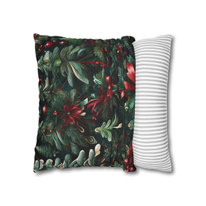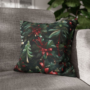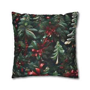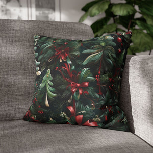 Craft a personalized indoor space with our Christmas Ribbon and Pines Design Spun Polyester Pillow Case Cover. Available in various sizes, these covers serve as stunning statement pieces, elevating the ambiance of any room. Made from 100% Polyester, these covers feature a double-sided print and a concealed zipper for easy handling. Note that this is a pre-constructed item with a size variance of +/- 0.5". Pillow insert not included.