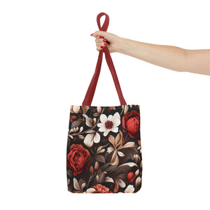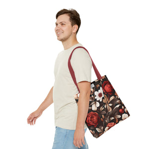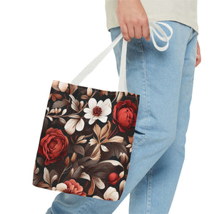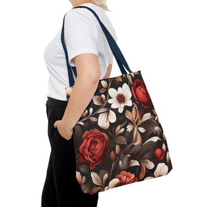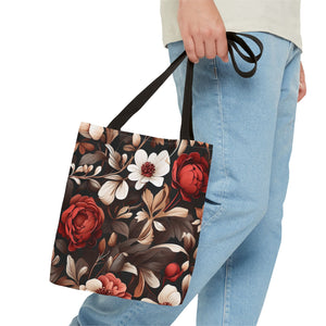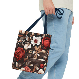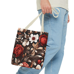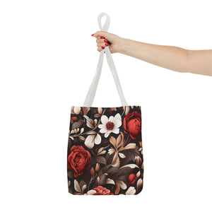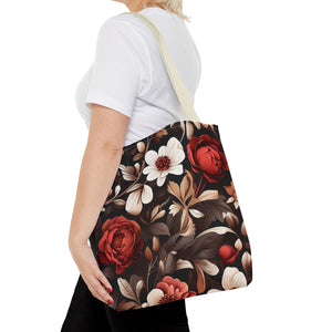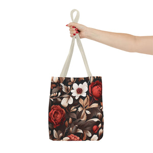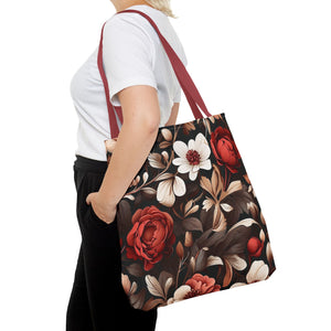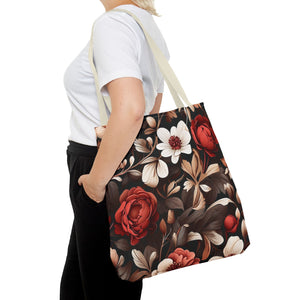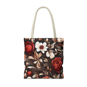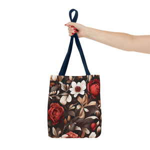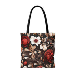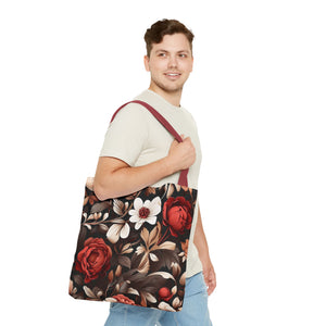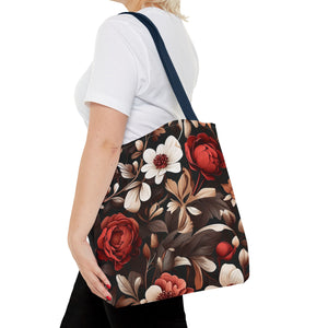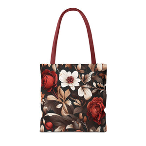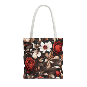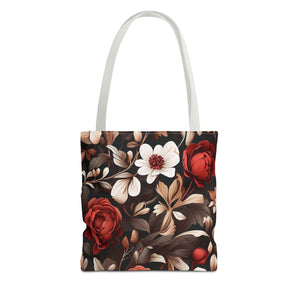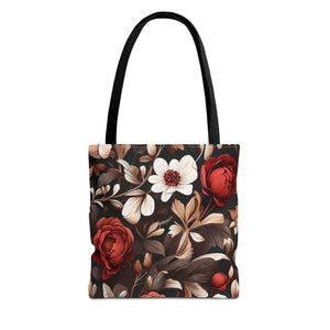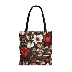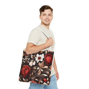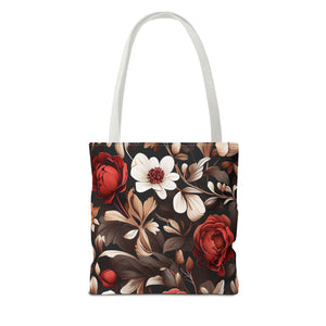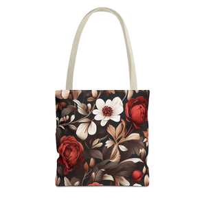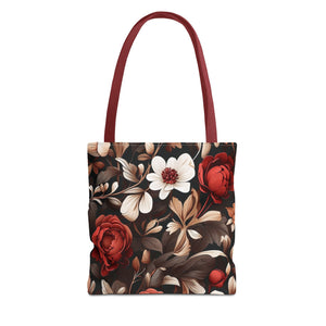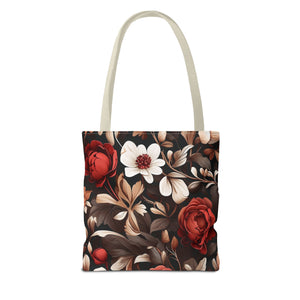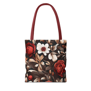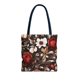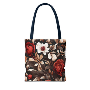 Spring tote bag, moody floral design, dark floral tote, stylish tote bag, reusable shopping bag, eco-friendly bag, floral fashion accessory, elegant tote bag, spring accessories, gift for her.