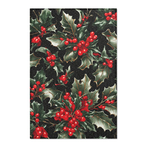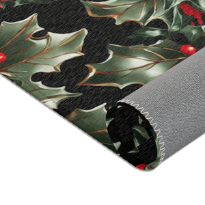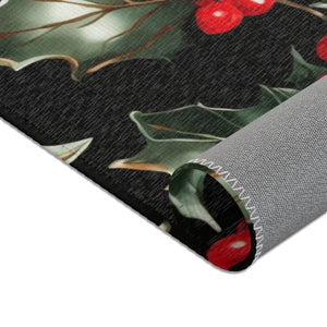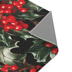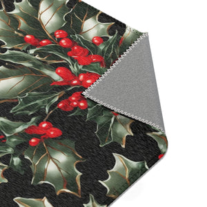 Elegant Holly of Christmas Designed Area Rugs Available in 3 Sizes