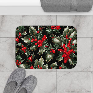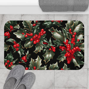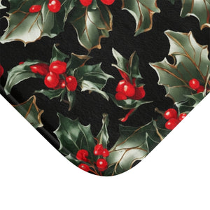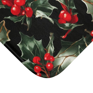 Elegant Holly of Christmas Designed Bath Mat Available in 2 Sizes