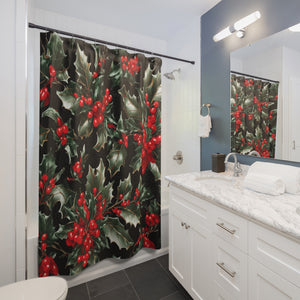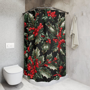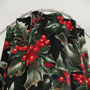 Elegant Holly of Christmas Designed Shower Curtain