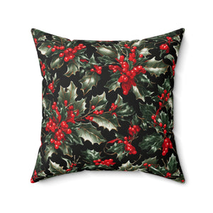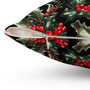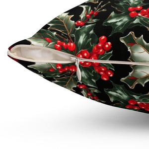 Elegant Holly of Christmas Design Spun Polyester Square Pillow with Insert