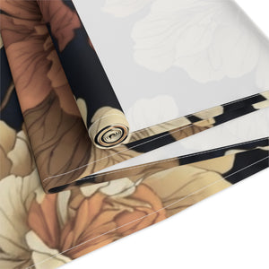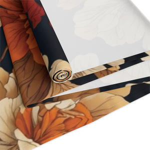 Transform your kitchen setting into a picturesque catalog entry with the Fall Floral Design Autumn Table Runner. A stylish runner is essential for creating a captivating dining atmosphere, and this table runner is designed to do just that. You have the option to choose between two premium materials: Cotton Twill and Polyester, both of which offer durability and style. Whether you have an artistic idea or a specific design in mind, this table runner can accommodate it with vivid, eye-catching colors. Available in two size options: 16" × 72" and 16" × 90", this table runner is versatile enough to fit various table dimensions. The hemmed edges add a polished finish to the design. Featuring a one-sided print with the enchanting Fall Floral Design, this table runner not only protects your table but also becomes a stunning centerpiece for your kitchen or dining area. Make a statement with your table decor and choose this exquisite table runner.