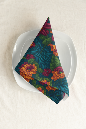 Exotic Tolmiea Flowers Designed Napkins, 4-set