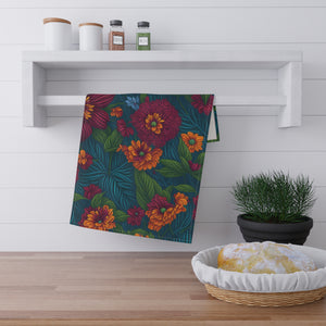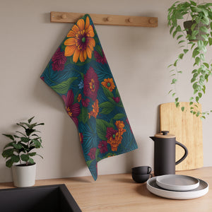 Exotic Tolmiea Flowers Designed Tea Towel (cotton, poly)