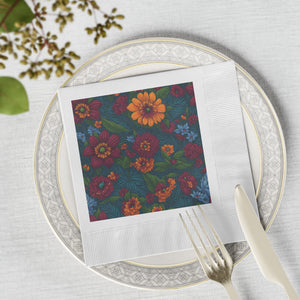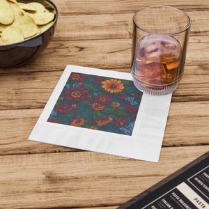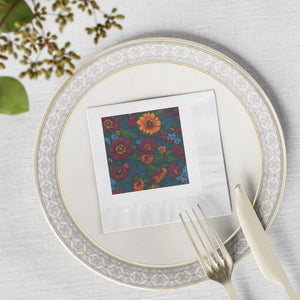 Exotic Tolmiea Flowers Designed White Coined Napkins Available in 2 Sizes and Count