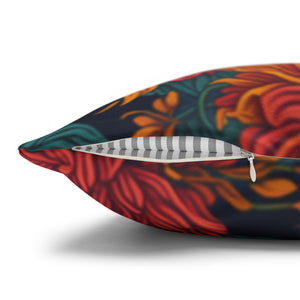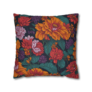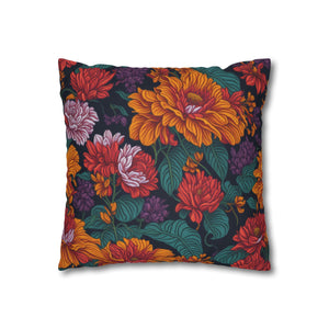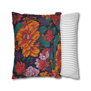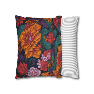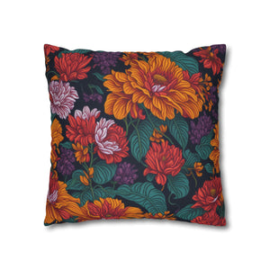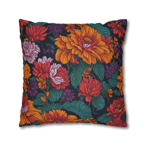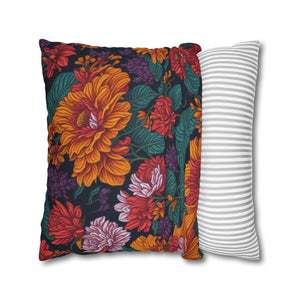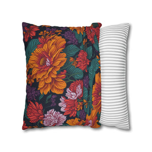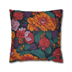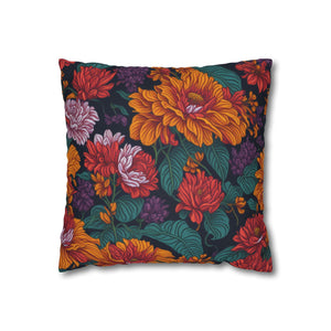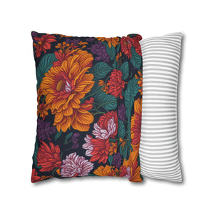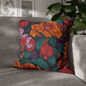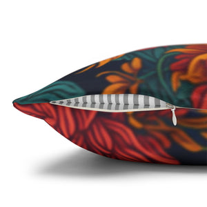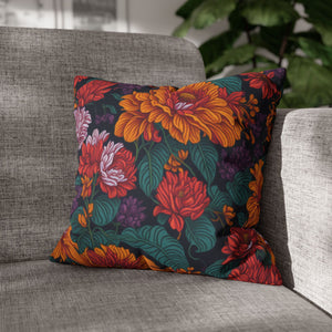 Expressive Tropical Colorful Floral Designed Spun Polyester Square Pillowcase