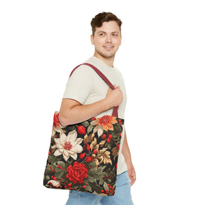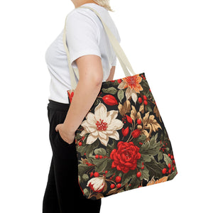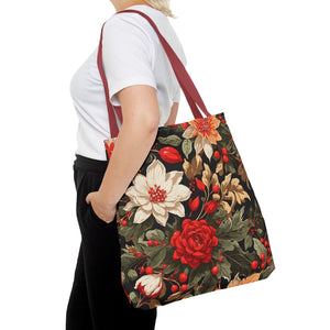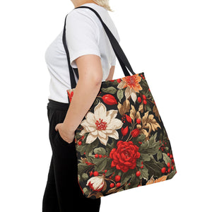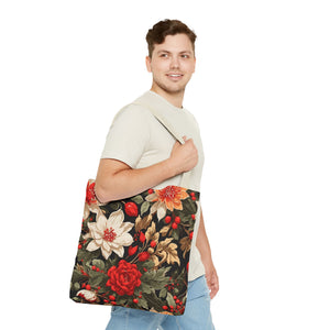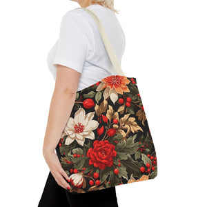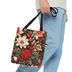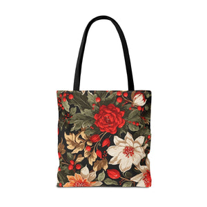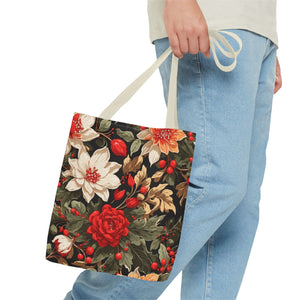 Glimmering Winter Floral Designed Tote Bag Available in 3 sizes