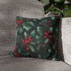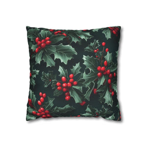 Holly and Berries Christmas Holiday Design Square Pillow Case Cover - Festive Decor for Every Room - 100% Polyester, Concealed Zipper