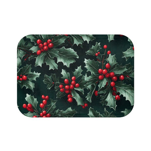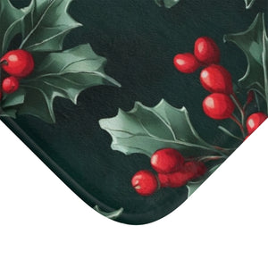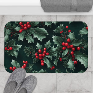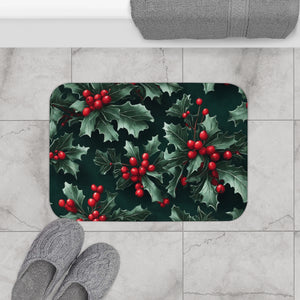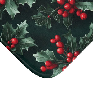 Fresh Holly and Berries Christmas Holiday Designed Bath Mat Available in 2 Sizes
