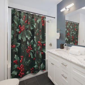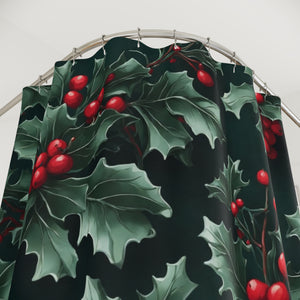 Fresh Holly and Berries Christmas Holiday Designed Shower Curtain