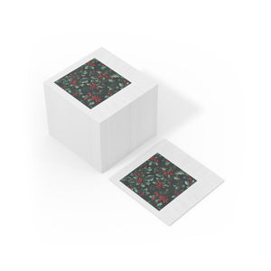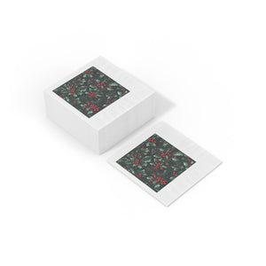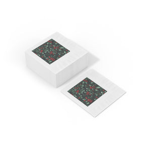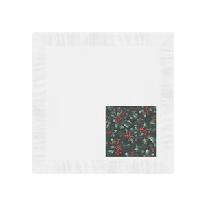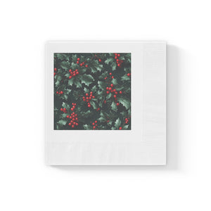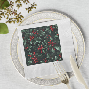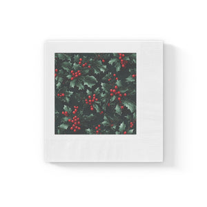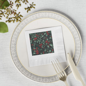 Fresh Holly and Berries Christmas Holiday Designed White Coined Napkins 2 Size and Count Options