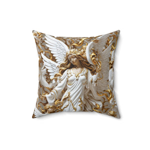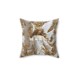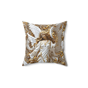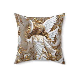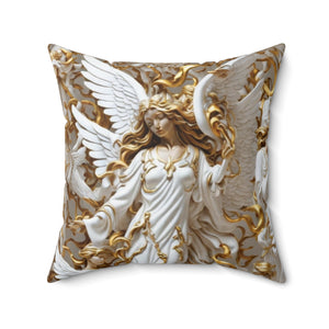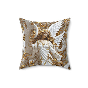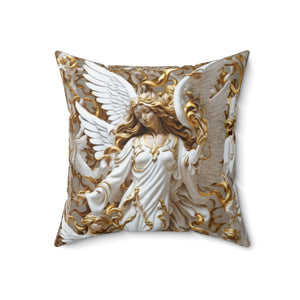 Imperfect Gold Accent Angel Christmas Holiday Spun Polyester Square Pillow with Insert