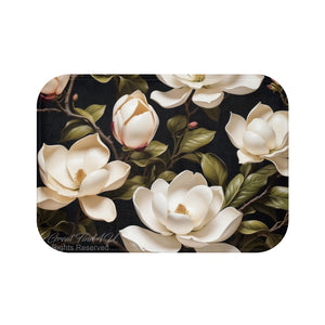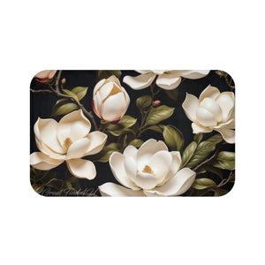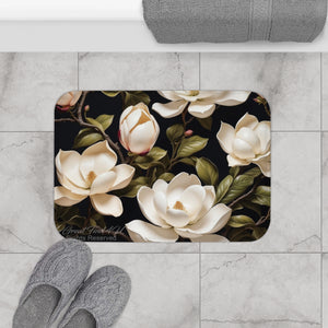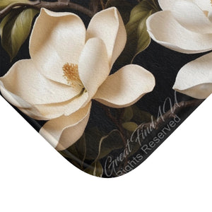 Wild White Magnolias Floral Designed Bath Mat Available in 2 Sizes