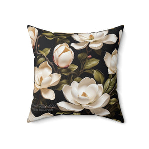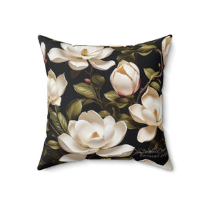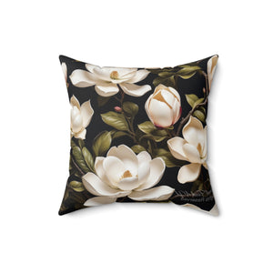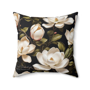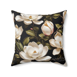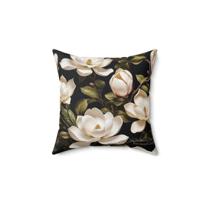 Wild White Magnolia Flower Designed Spun Polyester Square Pillow with Insert
