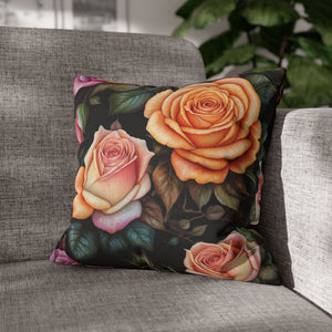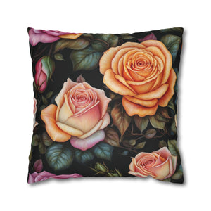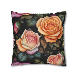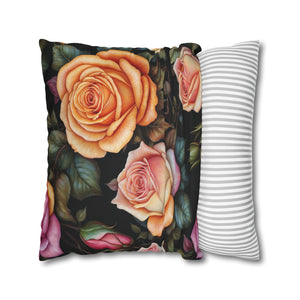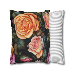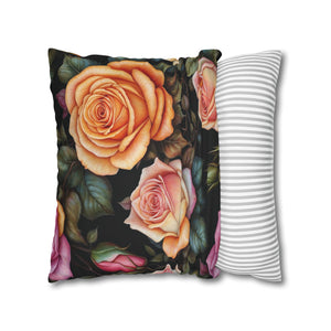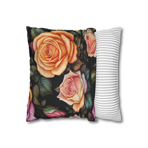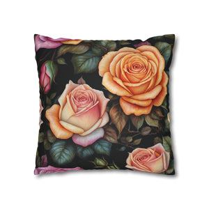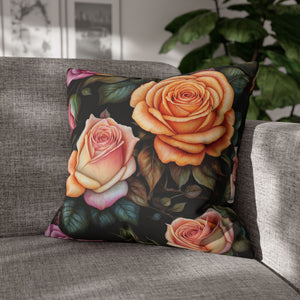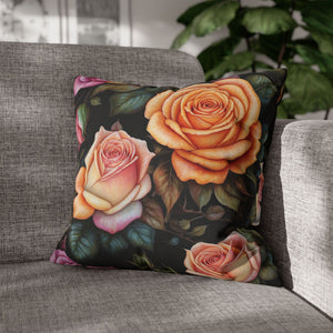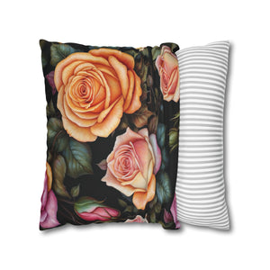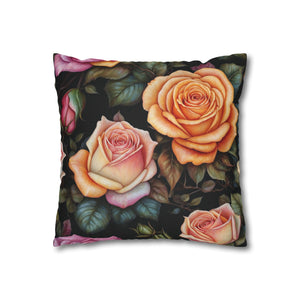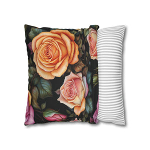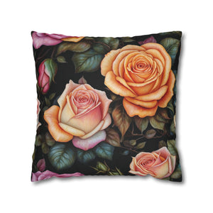 Captivating Pastel Floral Rose Designed Spun Polyester Square Pillowcase