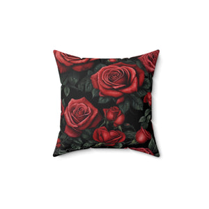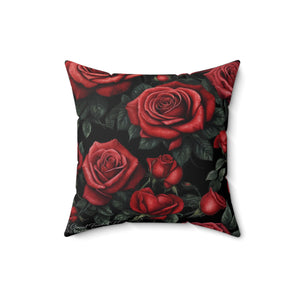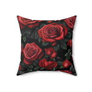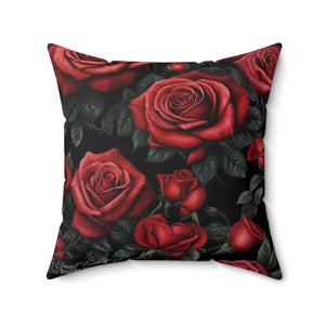 Picture Perfect Red Roses Awakening Designed Spun Polyester Square Pillow - Double-Sided Print, Concealed Zipper, Various Sizes - Insert Included
