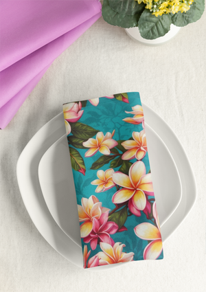Bold Summer Plumeria Flower Designed Napkins, 4-set