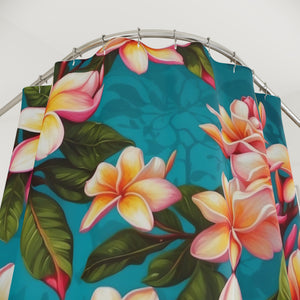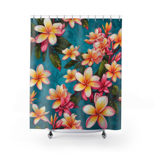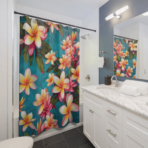 Bold Summer Plumeria Flower Designed Shower Curtain