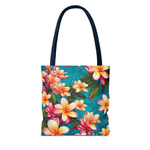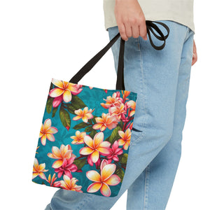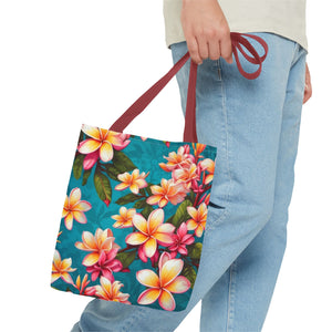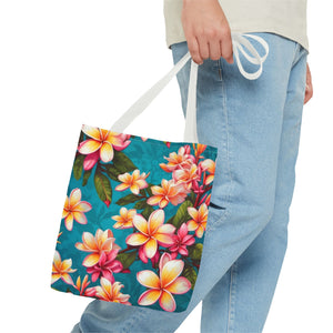 Bold Summer Plumeria Flower Designed Tote Bag 3 Sizes Available
