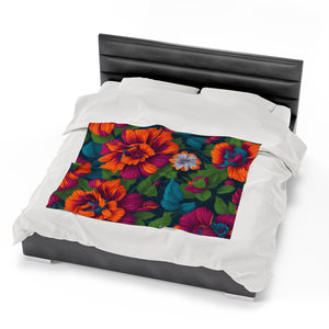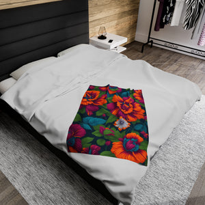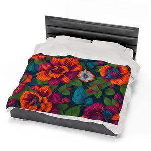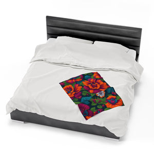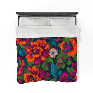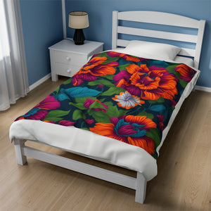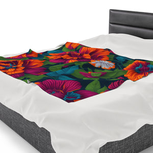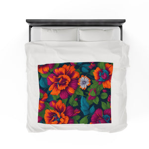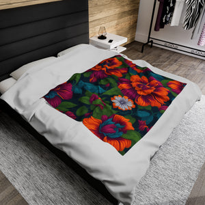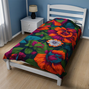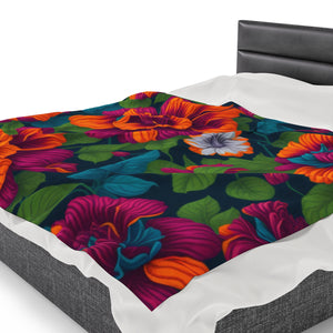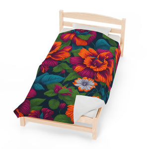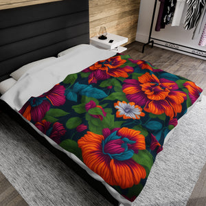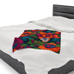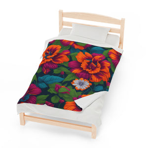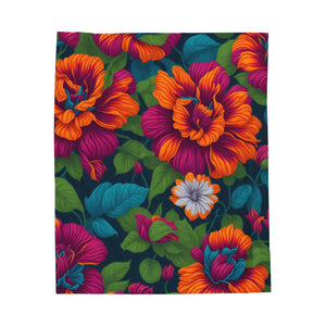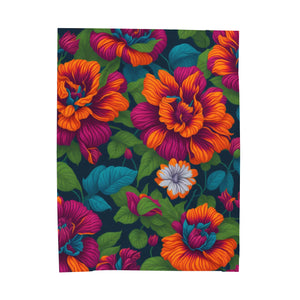 Dramatic Tropical Vesalea Flowers Designed Velveteen Plush Blanket Throw 3 Available Sizes