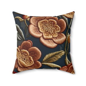Refined Cinnamon Slate Spring Flowers Spun Polyester Square Pillow with Insert