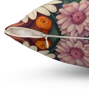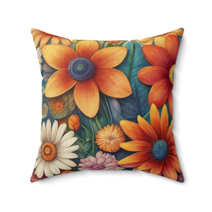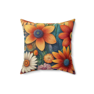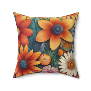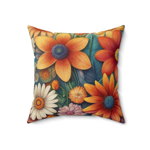 Summertime Full of Colorful Flowers Spun Polyester Square Pillow with Insert