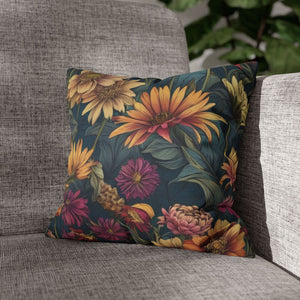Beautiful Zinnia Blooming Garden Designed Spun Polyester Square Pillow Case Cover