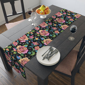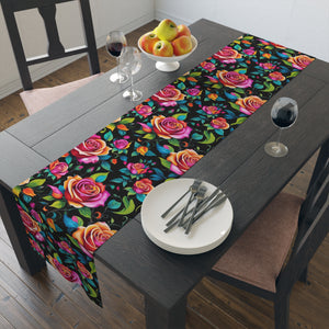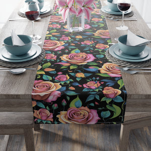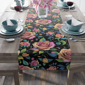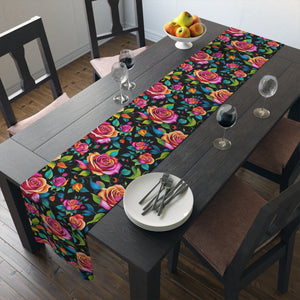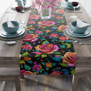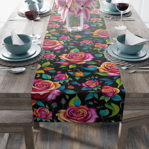 Illuminating Black Light Roses Designed Table Runner (Cotton/Poly) 2 Option Sizes